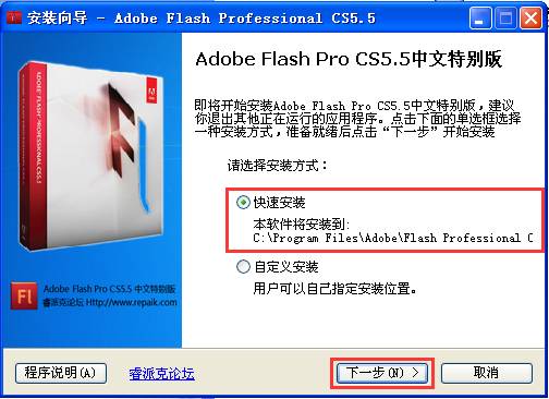 下載地址一(高速):點(diǎn)我下載 Adobe Flash CS5.5 安裝包