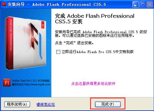 10、安裝成功,點(diǎn)擊完成。然后再去打開flash5.5,就可以打開了